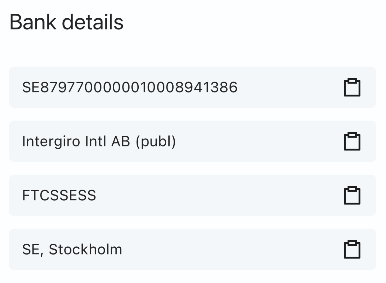 - You will see your IBAN, bank name, BIC